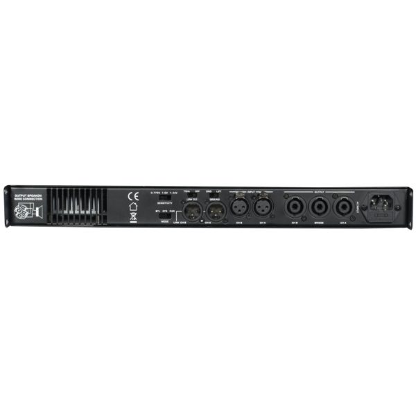 - 3 Speakon® outputs: left + right channels + bridge