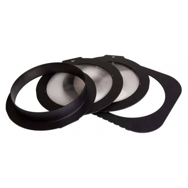 - Wide standard beam angle, but different accessories are included to modify the beam: