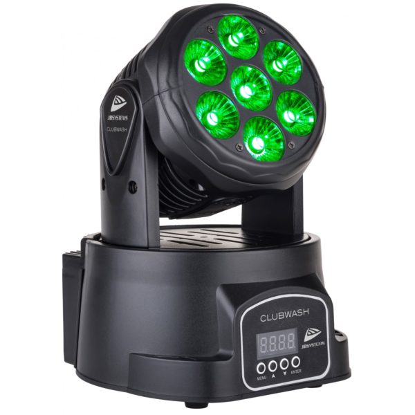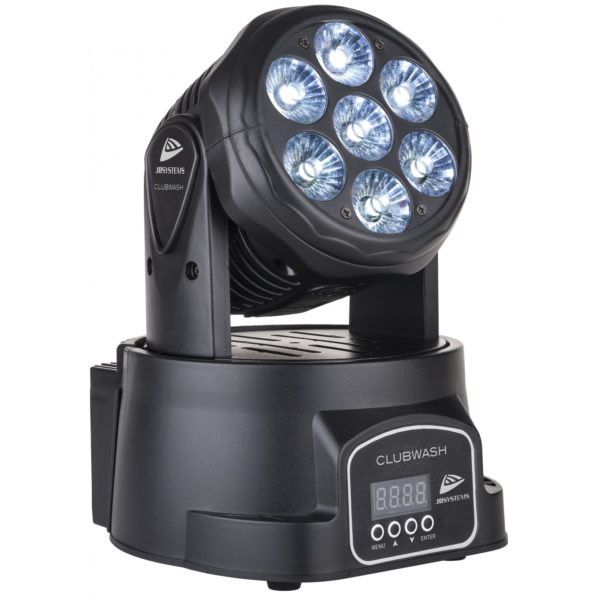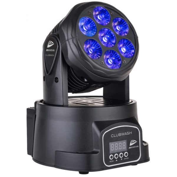 This small and lightweight Led Moving wash with 7x12W RGBWA+UV LEDs is ideal for pubs and the mobile DJ!