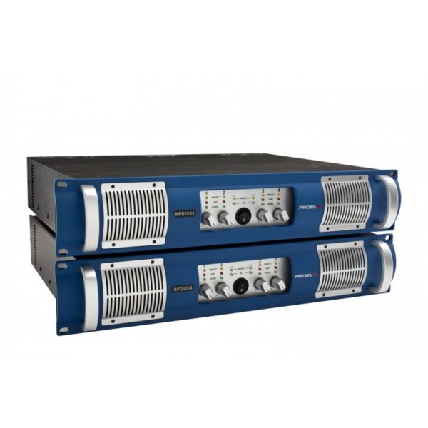 HPD2004 and HPD4004 are 4-channel amplifiers employing PROEL DA modules, a new generation of digitally controlled Cass D power amplifiers with Switch Mode Power Supply (SMPS) featuring an innovative technology.
