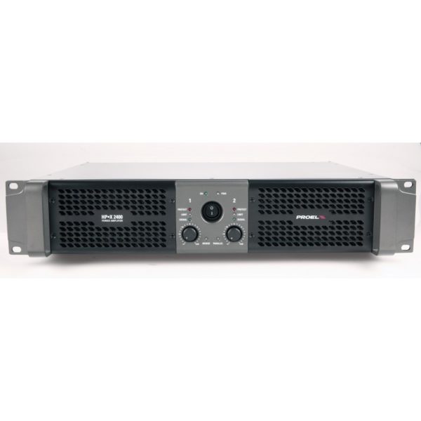 With the combination of efficient CLASS H power stages and a reliable switching power supply, the HPX2400, can deliver 2400 watts total at 2 ohm load making it a very convenient source of power in even the most demanding sound reinforcement applications.