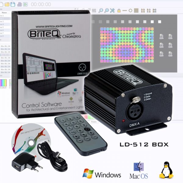 - 512 output channels when used standalone without computer (max 1500 steps / 255 scenes)
