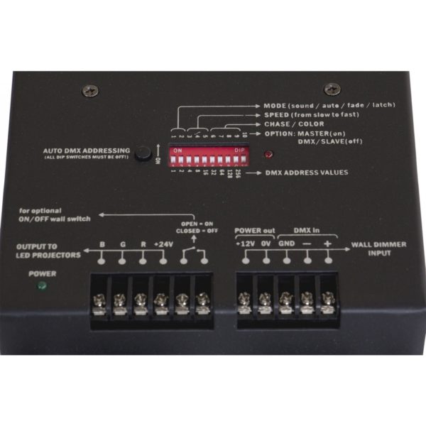 - Any wall-switch can be used to turn the LED output on/off, even when used in DMX-mode!