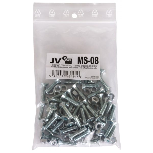 JV CASE Set 50x M4 screws/nuts for mounting Mains outlet.