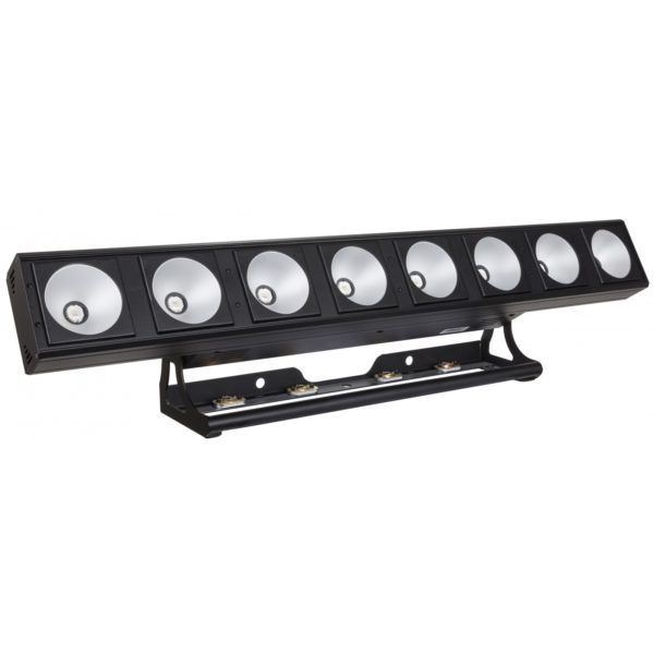 Powerful indoor LED projector equipped with 8pcs 30W COB RGB-leds.