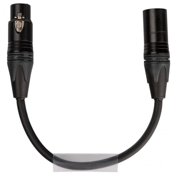- Assembled, balanced DMX signal adapter cable with XLR Neutrik® NC5MXX-BAG/NC3FXX-BAG connectors and transparent heat shrink (5cm, not shrunk) for custom labels.