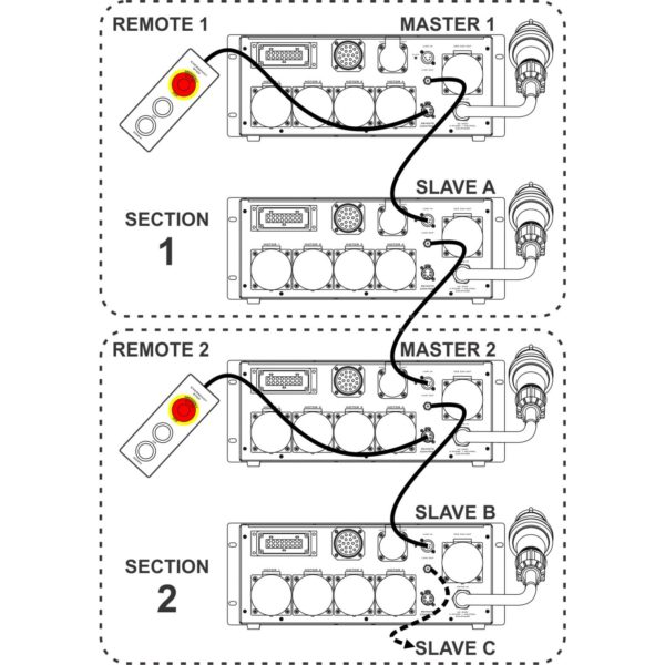 • Centralized Emergency stop on the master controller.